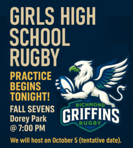 Today marks a landmark moment: our Richmond Griffins High School Girls Rugby program officially kicks off its Fall Sevens season with practice at Dorey Park. This is the first of many steps in our active commitment to growing girls’ rugby in Richmond.