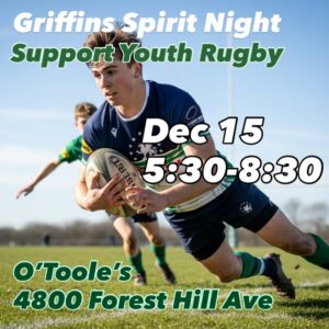 The Richmond Griffins Youth Rugby Club is excited to announce our next Spirit Night fundraiser, hosted by O’Toole’s Restaurant & Pub in Forest Hill on Monday, December 15th, from 5:30 PM to 8:30 PM. Whether you’re a proud Griffins family, a rugby alum, or a neighbor who loves supporting local youth sports, we’d be thrilled to have you join us.